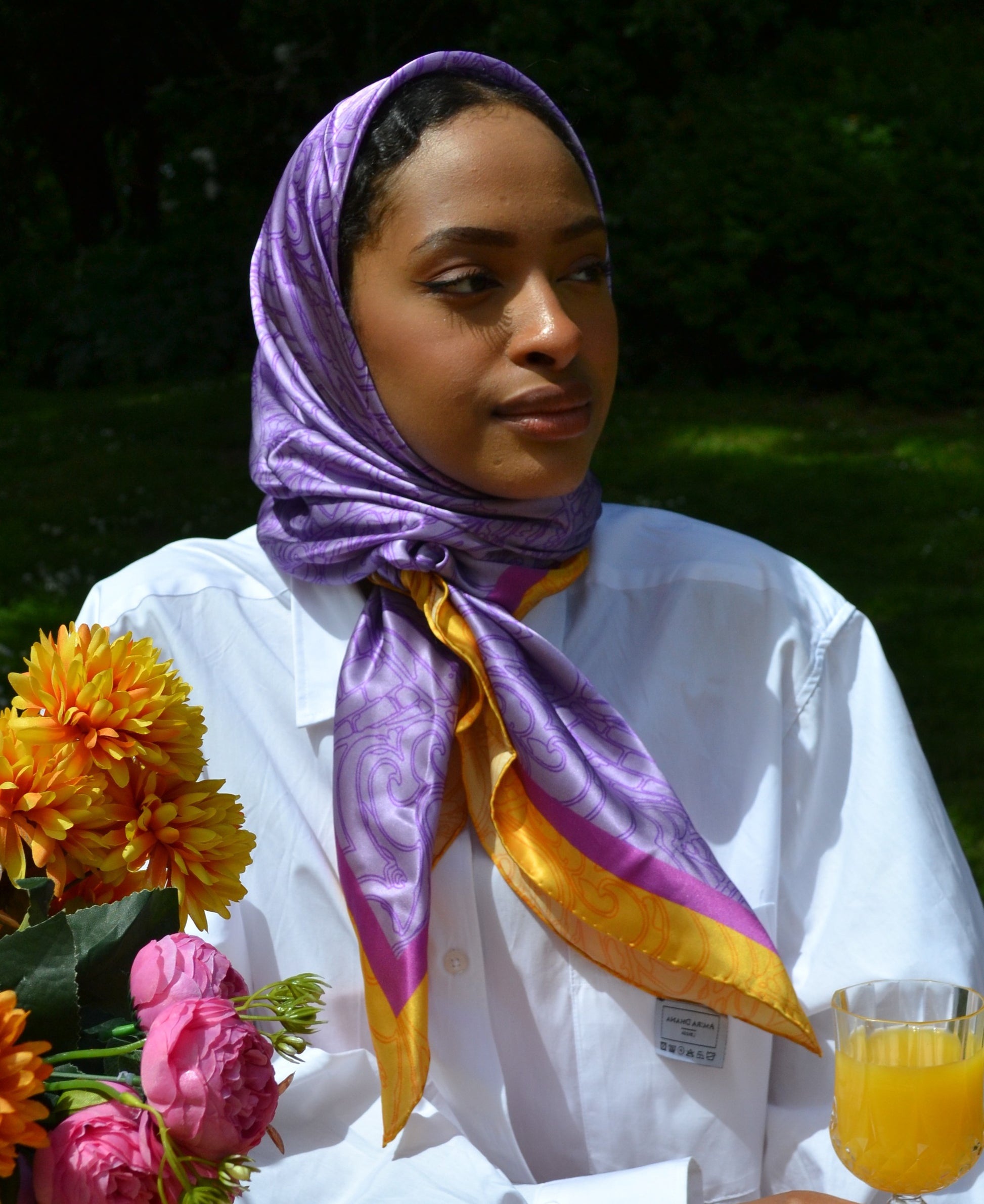 Elevate your style with Amira Dhana’s luxurious silk satin scarves. Each one a wearable work of art. Designed in-house, these statement pieces feature intricate patterns and vibrant colours that bring bold elegance to any look.