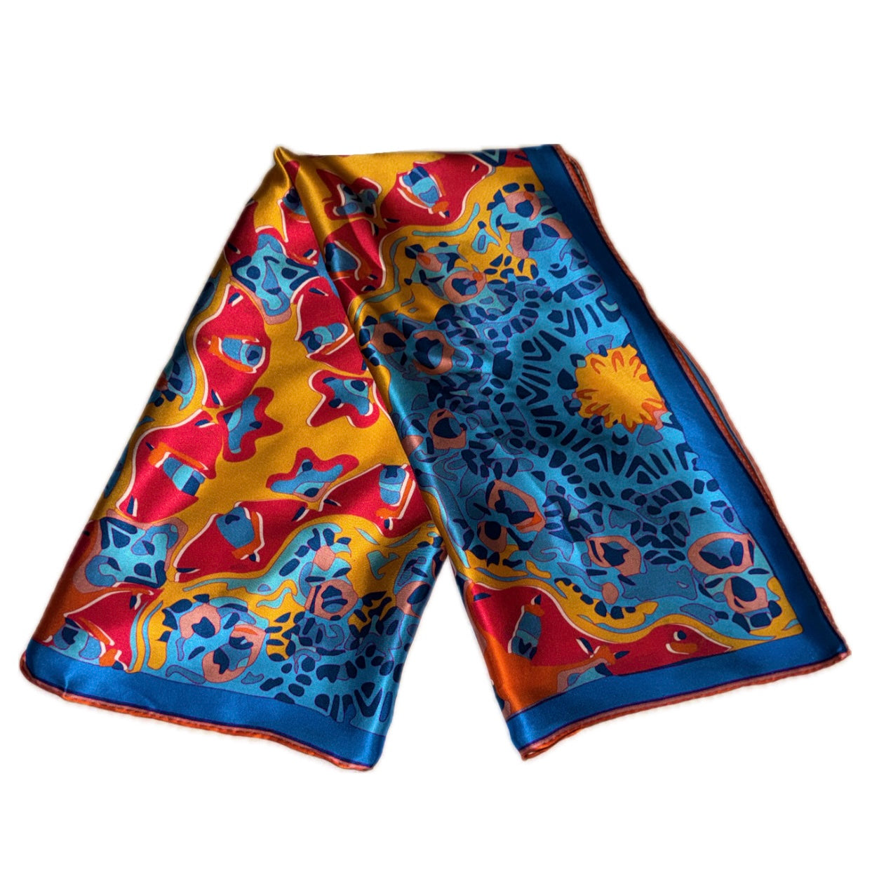 Elevate your style with Amira Dhana’s luxurious silk satin scarves. Each one a wearable work of art. Designed in-house, these statement pieces feature intricate patterns and vibrant colours that bring bold elegance to any look.