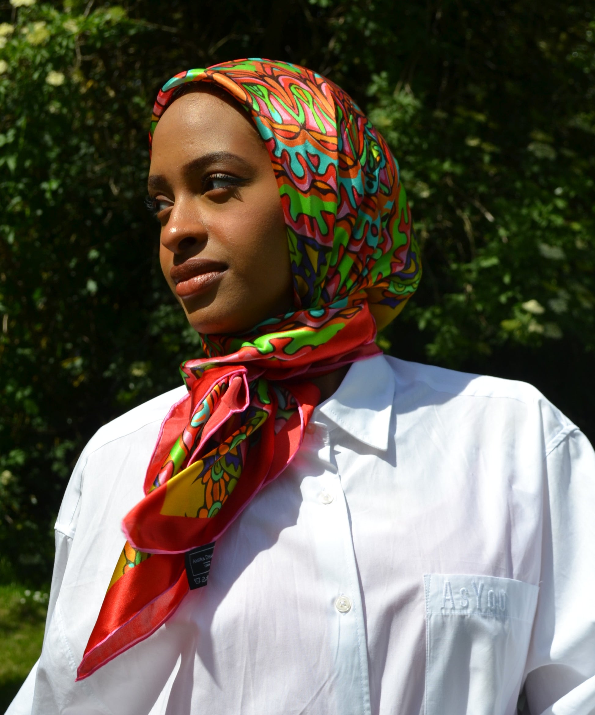 Elevate your style with Amira Dhana’s luxurious silk satin scarves. Each one a wearable work of art. Designed in-house, these statement pieces feature intricate patterns and vibrant colours that bring bold elegance to any look.